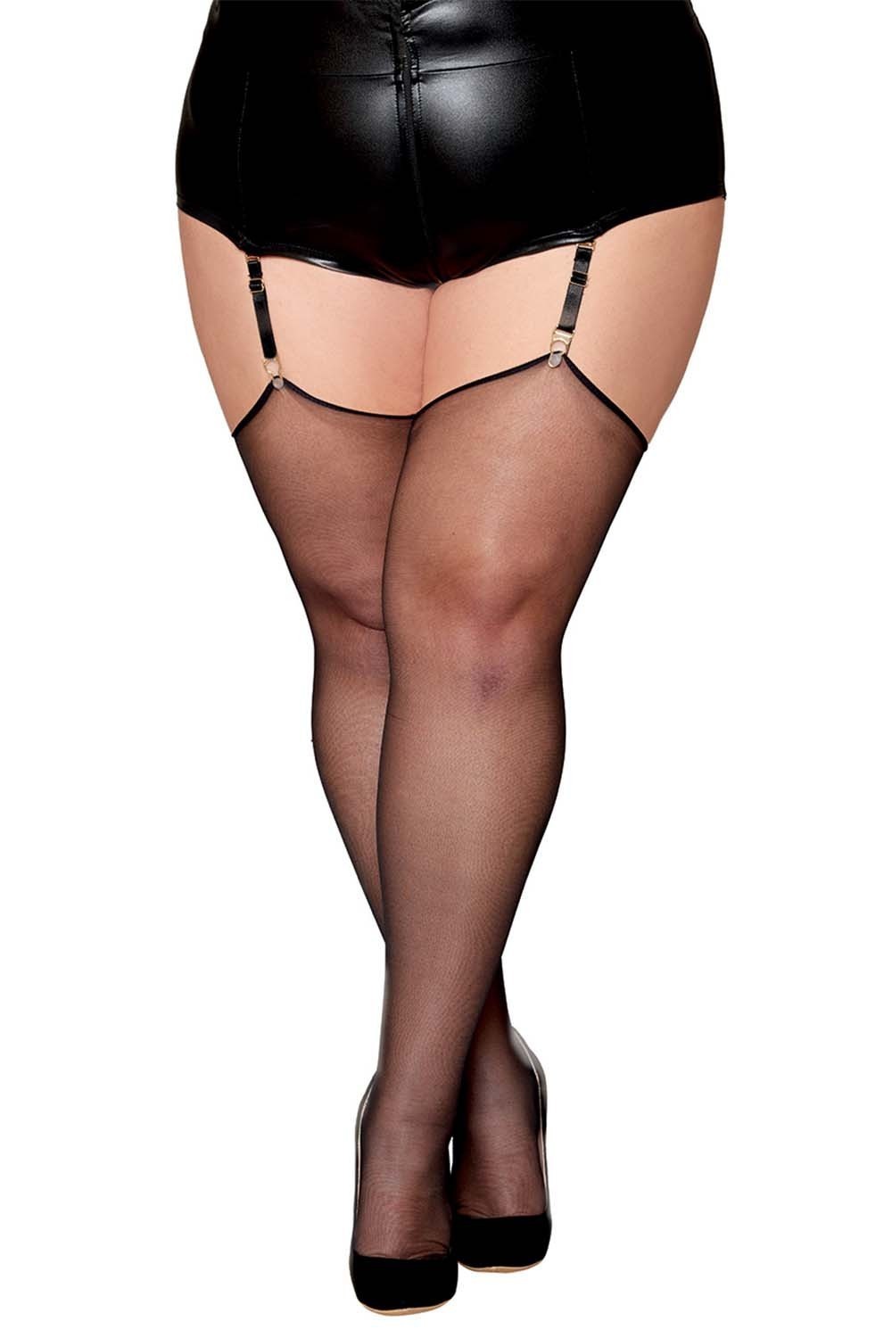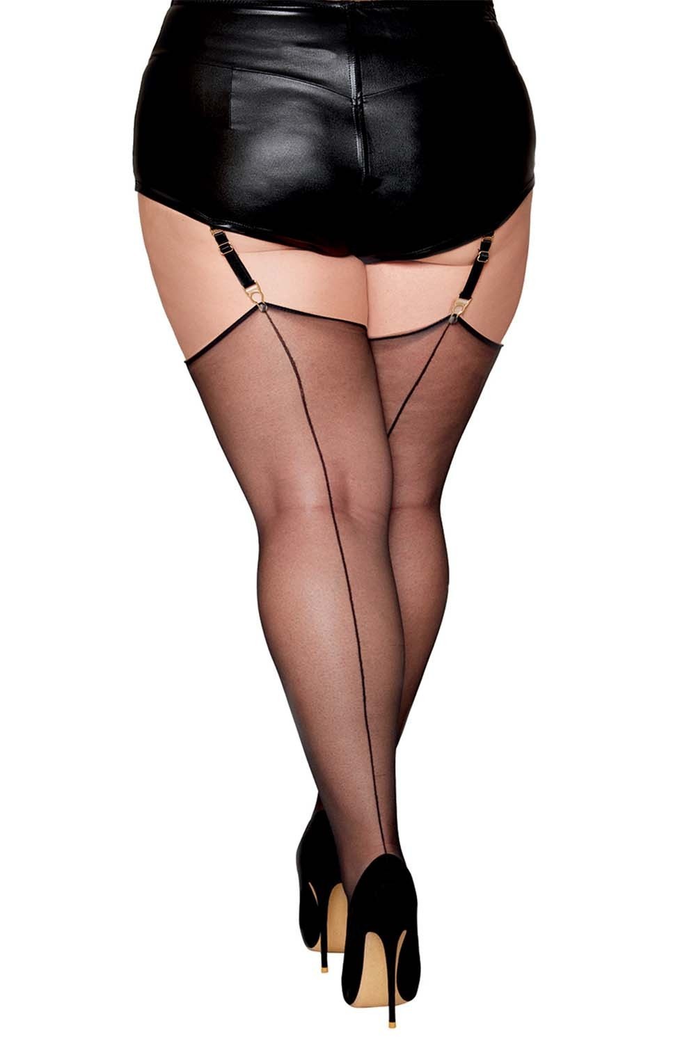 Bas noir, grande taille, en résille transparente avec couture arrière - DG0492XBLK
