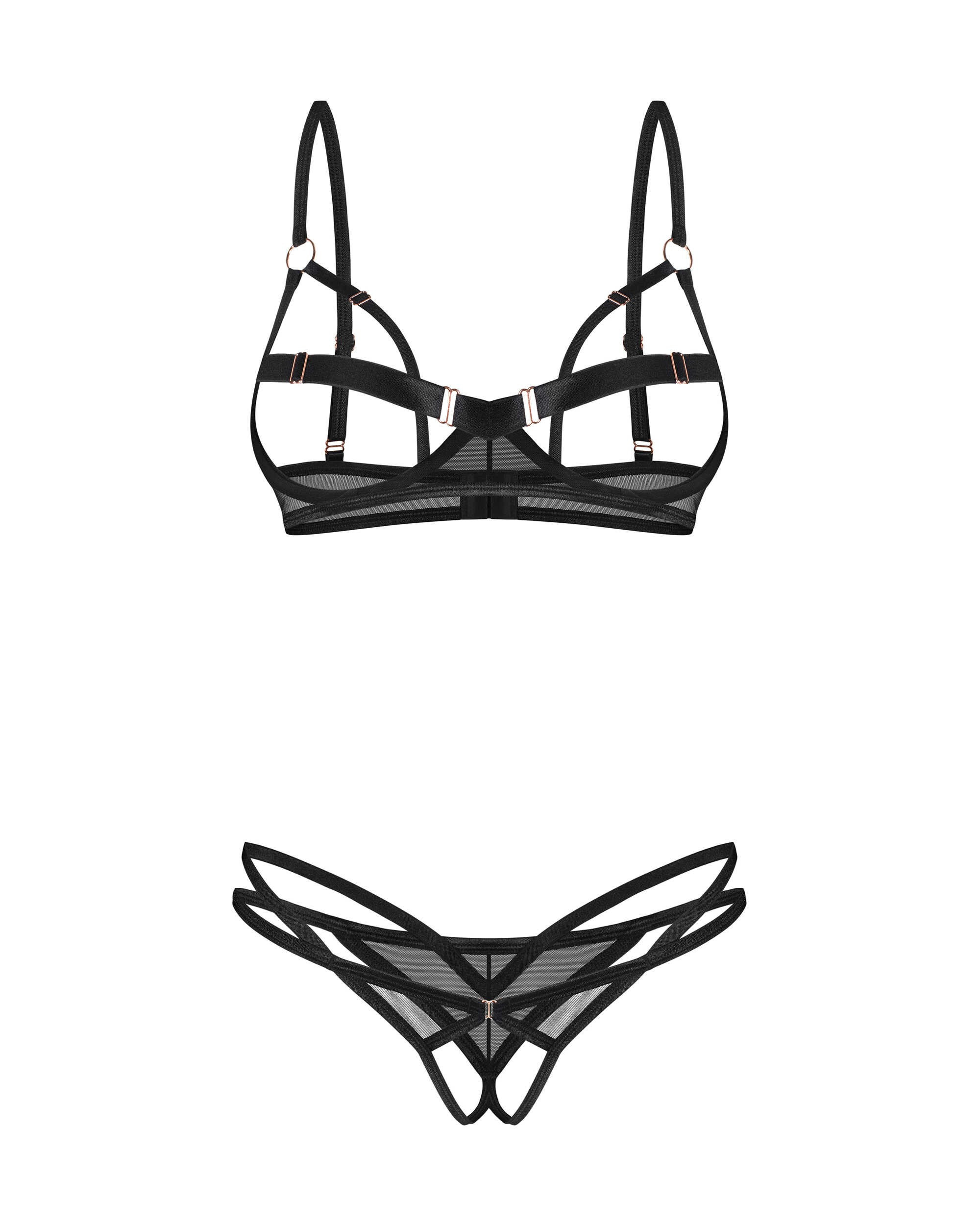 Repoussez les limites de la sophistication avec ce string ouvert au design audacieux. Une pièce pensée pour sublimer vos formes et célébrer votre sensualité unique.