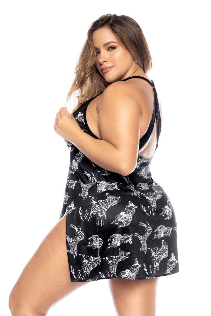 Nuisette grande taille imprimé zèbre, fendue sur les côtés - MAL7522XFIBK