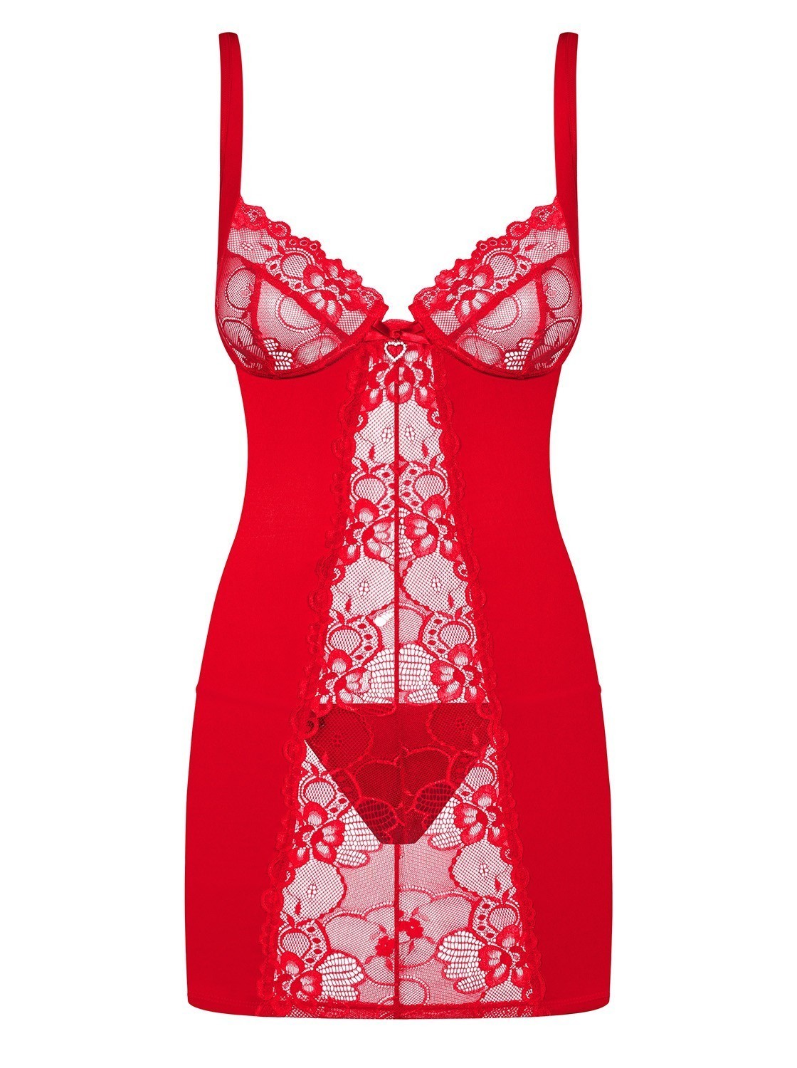 D'un rouge intense ornez votre corps de cette belle lingerie de nuit Heartina avec cette nuisette et son string assorti.