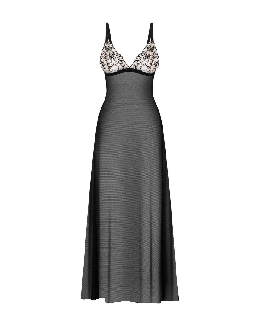Découvrez l'élégance et la sensualité de la nuisette longue Vila Blanes. Ce modèle noir transparent allie des tissus délicats et agréables au toucher pour un confort incomparable. Sa coupe classique et ajustée met en valeur la silhouette tout en restant raffinée.
